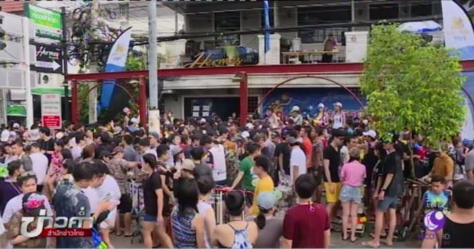 เริ่มแล้วงานวันไหลบางแสน จังหวัดชลบุรี วัยรุ่นจำนวนมากออกมาเล่นน้ำ บนถนนเลียบชายหาดบางแสน ตำบลแสนสุข อำเภอเมือง อย่างสนุกสนาน