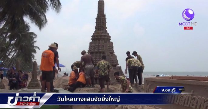 บรรยากาศควันหลงวันสงกรานต์ กับประเพณีก่อพระทราย วันไหลบางแสน จังหวัดชลบุรี มีผู้คนมาร่วมงานคึกคัก ทำให้รถติดยาวหลายสิบกิโลเมตร