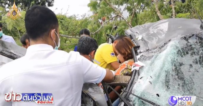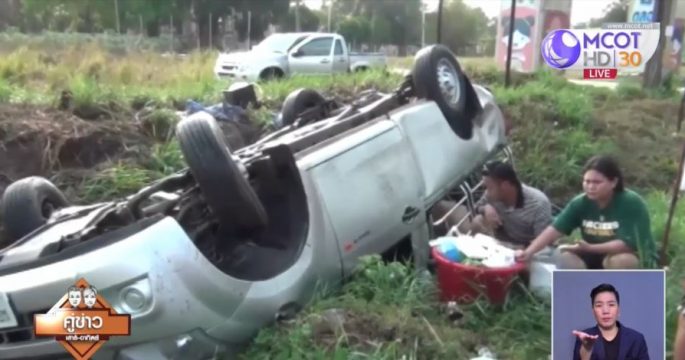 แม่ค้าขายไข่ไก่ วัย 33 ปี ขับรถกระบะฝ่าฝนจะไปขายของ ขณะเปลี่ยนเลน รถเกิดเสียหลักลื่นไถลไปชนเสาข้างทางและกองดิน ก่อนพลิกคว่ำหลายตลบ แต่เจ้าตัวบาดเจ็บแค่เล็กน้อย ศีรษะปูดบวม ถลอกตามร่างกาย