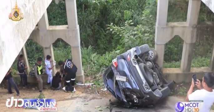 เสี่ยร้านชำปากน้ำระนองวูบหลับ ขับรถตกสะพานสูง 30 ม. บาดเจ็บเล็กน้อย