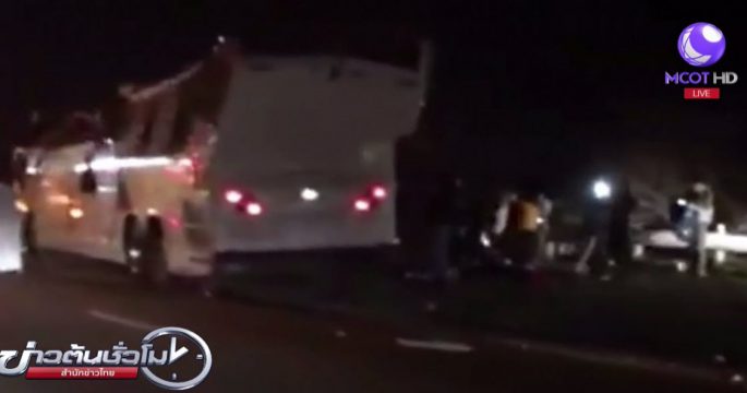 รถทัวร์โดยสารปรับอากาศชั้น 1 เสียหลักชนประสานงากับรถพ่วง 18 ล้อ บริเวณถนนมิตรภาพ กม.120 ฝั่งขาเข้าตัวเมืองนครราชสีมา เสียชีวิต 1 ราย บาดเจ็บ 15 คน