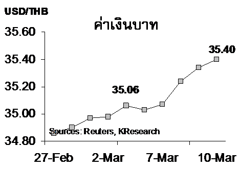 กรุงเทพฯ9 มี.ค.-กสิกรไทย ประเมินบาท อาจอ่อนค่าลงอีก อาจแตะ 32 บาท/ดอลลาร์ สรอ. จับตาเงินทุนเคลื่อนย้าย –การเมือง กระทบดัชนีหุ้น
