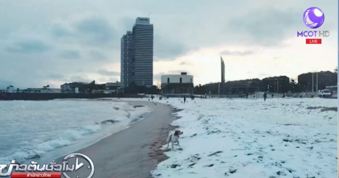 สภาพอากาศหนาวจัดในสเปน ส่งผลให้บริเวณชายหาดในเมืองบาร์เซโลนา เมืองเอกของแคว้นกาตาลุญญา ปกคลุมไปด้วยหิมะ ผู้คนพากันออกมาถ่ายรูปและสนุกสนานกับการเล่นหิมะ