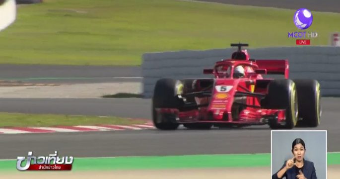 เซบาสเตียน เวทเทล นักขับชาวเยอรมัน ทำเวลาต่อรอบดีที่สุดในการทดสอบ สนามเอฟ 1 ที่บาร์เซโลนา ประเทศสเปน