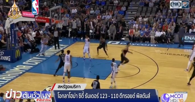 บาสเก็ตบอลเอ็นบีเอ สหรัฐ โอกลาโฮมา ซิตี ธันเดอร์ เปิดสนามชนะ ดีทรอยต์ พิสตันส์ 123-110