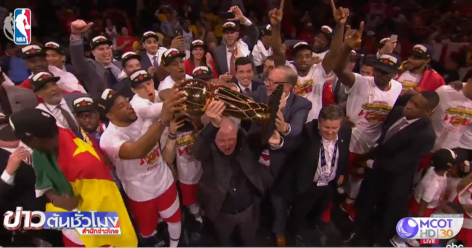บาสเอ็นบีเอ สหรัฐ ฤดูกาล 2018-2019 รอบชิงชนะเลิศ เกมที่ 6 ‘โตรอนโต้ แร็ปเตอร์’ ชนะ ‘โกลเด้น สเตท’ 114-110 คะแนน เอาชนะซีรีส์ 4-2 เกม คว้าแชมป์เอ็นบีเอ และเป็นสมัยแรกของแร็ปเตอร์