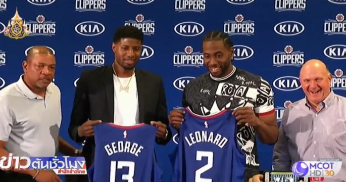 ลอสแอนเจลิส คลิปเปอร์ส สโมสรชื่อดังในศึกบาสเกตบอลเอ็นบีเอของสหรัฐ เปิดตัว คาไว เลียวนาร์ด และ พอล จอร์จ สองนักบาสซูเปอร์สตาร์ที่ย้ายมาร่วมทีมในฤดูกาลนี้