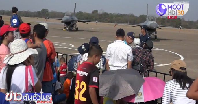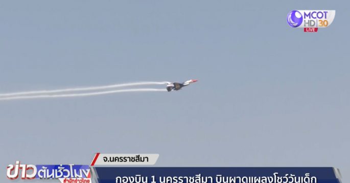 บรรยากาศจัดกิจกรรมวันเด็กที่กองบิน 1 นครราชสีมาเป็นไปอย่างคึกคัก มีการแสดงบินโชว์สมรรถนะของฝูงเครื่องบินขับไล่ F16 เป็นการบินเกาะกลุ่ม 3 ลำด้วยท่าต่างๆ พร้อมการแสดงบินผาดแผลง