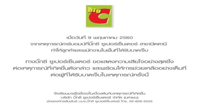 บิ๊กซีฯ ออกแถลงกรณ์แสดงความเสียใจ พร้อมช่วยเหลือผู้บาดเจ็บจากเหตุระเบิดที่ปัตตานี