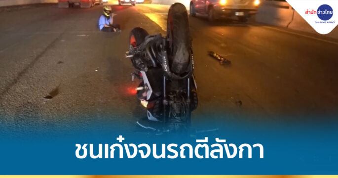 บิ๊กไบค์ชนท้ายเก๋งเปลี่ยนเลนกะทันหัน จนรถตีลังกา คนขับบาดเจ็บ เหตุเกิดบนสะพานข้ามคลองท่าสะอ้าน ขาเข้าบางปะกง