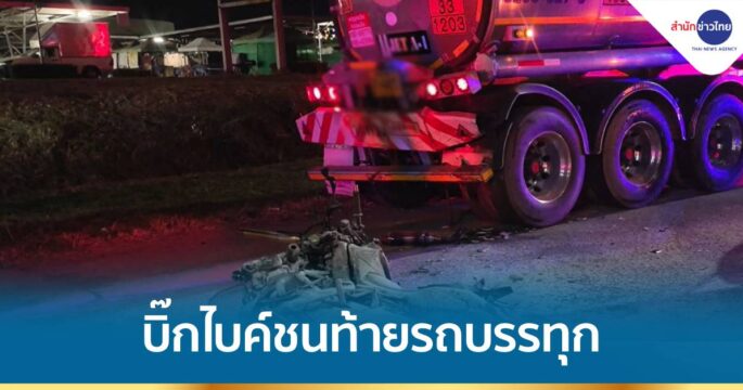 สลด! ลูกชายตลกดัง “เอ๋ เชิญยิ้ม” ซิ่งบิ๊กไบค์ชนท้ายรถพ่วง 18 ล้อ ไฟลุกท่วมคลอกดับ บนสะพานต่างระดับสาลีโข ย่านปากเกร็ด จ.นนทบุรี