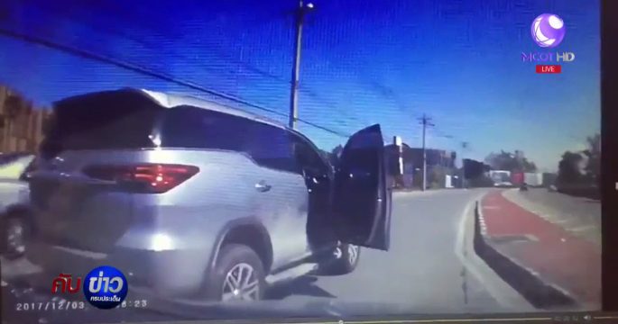 รถกระบะชะลอดูอุบัติเหตุแต่ถูกบีบแตรไล่ จึงไม่พอใจ ก่อเหตุขับปาดหน้าคู่กรณี และคว้าอีโต้ยาวครึ่งเมตรไล่ฟัน