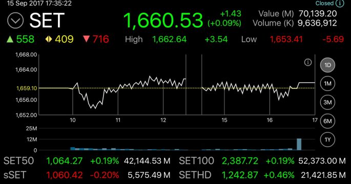 หุ้นไทยบวก 1.43 จุด กังวลเกาหลีเหนือยิงขีปนาวุธ สัปดาห์หน้าจับตานโยบายการเงินเฟด-บีโอเจ