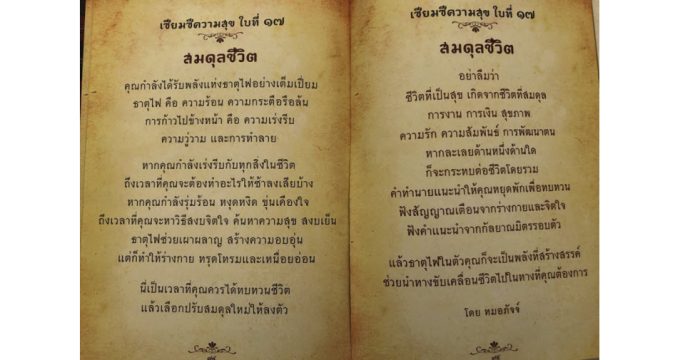 บึงกาฬ 12 ธ.ค.- พล.อ.ประยุทธ์ จันทร์โอชา นายกรัฐมนตรี เยี่ยมชมบูทบริการทางการแพทย์ต่างๆ ในโอกาสเป็นประธานเปิดโครงการหน่วยแพทย์เคลื่อนที่ บึงกาฬ ระหว่างการลงพื้นที่ตรวจราชการ ที่ จ.บึงกาฬ วันนี้ (12 ธ.ค.) และได้เสี่ยงเซียมซีสมดุลชีวิต ของบูทกรมสุขภาพจิต นายกรัฐมนตรีได้เซียมซีใบที่ 17 โดยมีใจความตอนหนึ่งว่า คุณกำลังได้รับพลังแห่งธาตุไฟอย่างเต็มเปี่ยม ธาตุไฟ คือ ความร้อนความกระตือรือร้น ความก้าวไปข้างหน้า คือ ความเร่งรีบ ความวู่วาม และการทำลาย หากคุณกำลังเร่งรีบกับทุกสิ่งในชีวิต ถึงเวลาที่คุณจะต้องทำอะไรให้ช้าลงเสียบ้าง หากคุณกำลังรุมร้อน หงุดหงิด ขุ่นเคืองใจ ถึงเวลาที่คุณจะหาวิธีสงบจิตใจ ค้นหาความสุข สงบเย็น ธาตุไฟช่วยเผาผลาญ สร้างความอบอุ่น แต่ก็ทำให้ร่างกายสุดโทรม และเหนื่อยอ่อน นี่เป็นเวลาที่คุณควรได้ทบทวนชีวิต แล้วเลือกปรับสมดุลใหม่ให้ลงตัว .- สำนักข่าวไทย