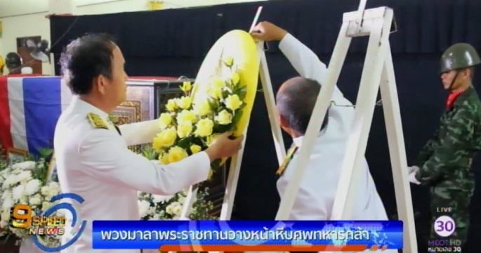 รองผู้ว่าฯ สกลนคร อัญเชิญพวงมาลาพระราชทาน วางหน้าหีบศพอาสาสมัครทหารพราน เสียชีวิตจากเหตุการณ์ความไม่สงบ