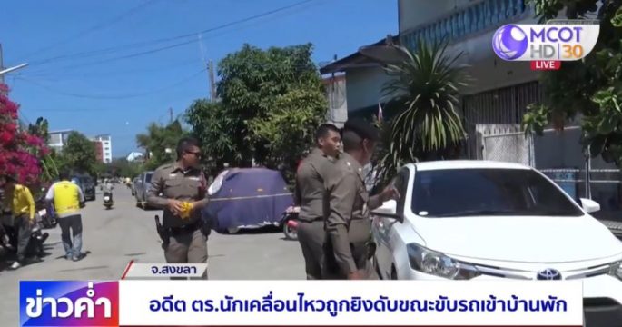ตำรวจเมืองสงขลา เร่งล่าตัวคนร้ายบุกยิงอดีตตำรวจนักเคลื่อนไหวช่วยเหลือสังคม และเปิดโปงพฤติกรรมทุจริตของตำรวจ เสียชีวิตที่หน้าบ้านพัก