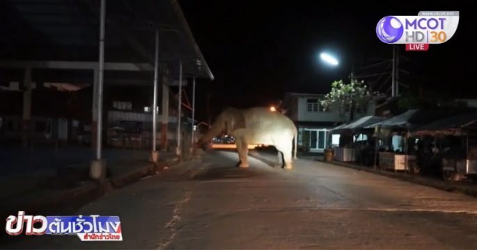 “พลายสีดอแดง” ช้างใหญ่สุดในเอเซีย ซึ่งหลบหนีจากสถานปรับเปลี่ยนพฤติกรรมช้าง ที่เขตรักษาพันธุ์สัตว์ป่าเขาอ่างฤาไน จ.ฉะเชิงเทรา เมื่อกว่า 2 เดือน บุกเข้ากลางเมืองจันทบุรี