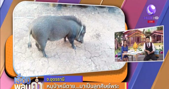 พระสงฆ์ออกบิณฑบาตในเขตเทศบาลตำบลน้ำโสม อ.น้ำโสม จ.อุดรธานี โดยจะมีหมูป่า อายุประมาณ 2 ปี เดินตามหลังพระหยุดรับบาตร หมูป่าจะหยุด โดยตลอดทางจะมีสุนัขเห่าหมูป่า จนต้องวิ่งไล่สุนัขแตกกระเจิง
