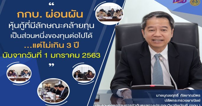 กกบ.ยันใช้มาตรฐานบัญชีใหม่ 1 ม.ค.63 ผ่อนผันหุ้นกู้ที่มีลักษณะคล้ายทุนเป็นส่วนหนึ่งของทุนต่อไปได้ แต่ไม่เกิน 3 ปี