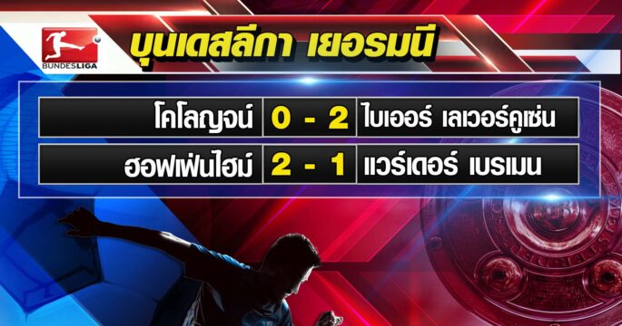 ฮอฟเฟ่นไฮม์ บุกเอาชนะ แวร์เดอร์ เบรเมน 2-1 ในศึกบุนเดสลีกาเยอรมนี ส่วนนิวคาสเซิล เอาชนะ แมนฯ ยู 2-0 แซงขึ้นไปรั้งอันดับ 3 ศึกพรีเมียร์ ลีกอังกฤษ