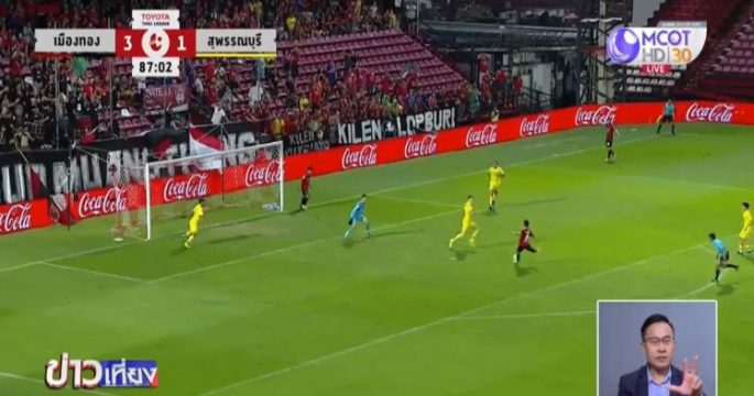 เมืองทอง เปิดบ้านชนะ สุพรรณบุรี 4-1 ส่วนสิงห์ เชียงราย ยูไนเต็ด ทำแต้มไล่จี้ บุรีรัมย์ ยูไนเต็ด เหลือเพียงแค่ 1 คะแนน หลังจากบุกชนะ ชลบุรี เอฟซี 2-0 ในฟุตบอลโตโยต้าไทยลีก