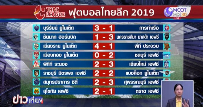 บุรีรัมย์ ยูไนเต็ด ยังนำเป็นจ่าฝูงฟุตบอลโตโยต้า ไทยลีก ขณะที่พรีเมียร์ลีก อังกฤษ แมนฯ ยูไนเต็ด เปิดบ้านถล่มเชลซี 4-0