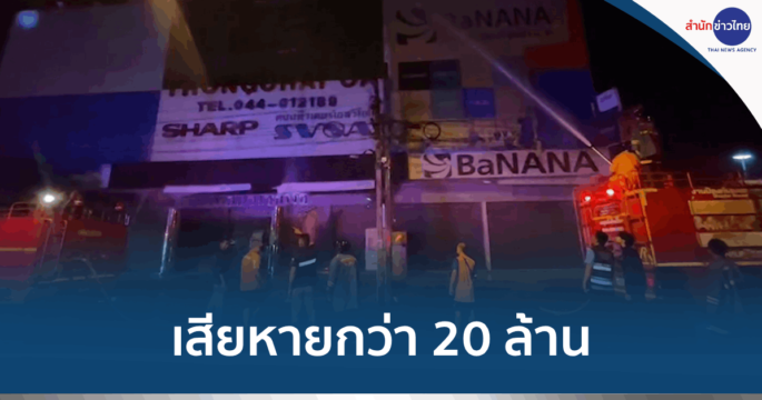 ไฟไหม้ร้านค้าส่งอุปกรณ์ไอทีชื่อดังกลางเมืองบุรีรัมย์ คอมพิวเตอร์สำนักงานและอุปกรณ์ไอทีทุกชนิด เสียหายเกือบทั้งหมด คาดมูลค่าไม่น้อยกว่า 20 ล้านบาท