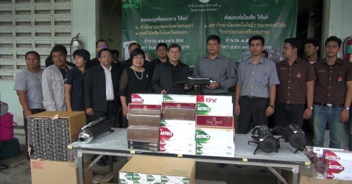 ศก.ภาค 4 มอบของกลางบุหรี่นับหมื่นซองคดีสิ้นสุดแล้วให้ 2 หน่วยงาน ใช้เป็นประโยชน์ต่อการเกษตรทำยาปราบศัตรูพืช ส่วนท่อไอเสียใช้พัฒนางานวิจัยของคณะวิทย์ มทร.ศรีวิชัย