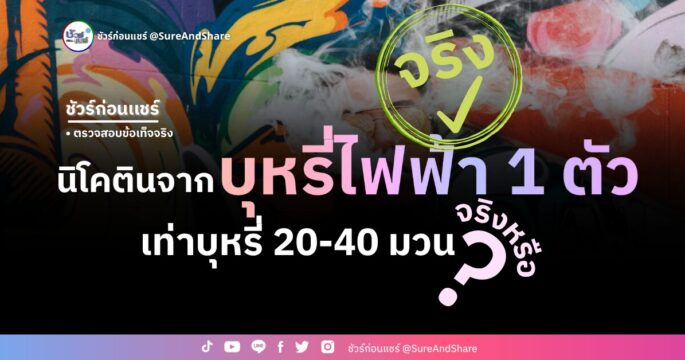 ชัวร์ก่อนแชร์: นิโคตินจากบุหรี่ไฟฟ้า 1 ตัว เท่ากับ บุหรี่ 20 มวน จริงหรือ?