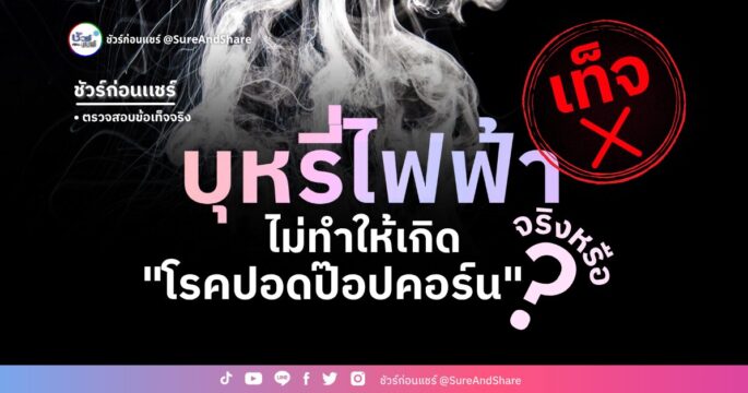 ชัวร์ก่อนแชร์: บุหรี่ไฟฟ้าไม่ทำให้เกิด “โรคปอดป๊อปคอร์น” จริงหรือ?