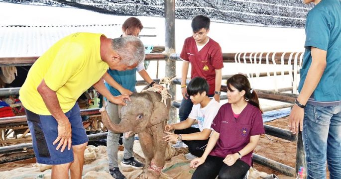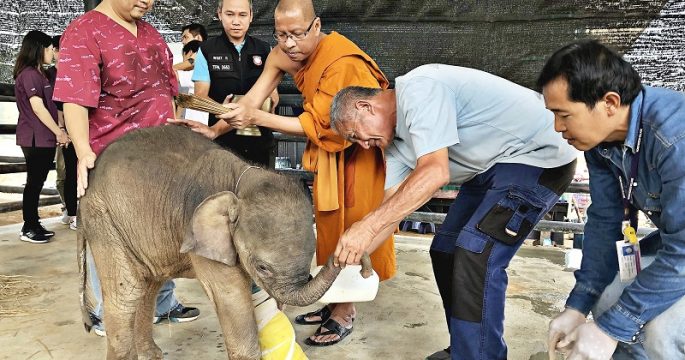 ลูกช้างบาดเจ็บบ่วงรัดขาดีขึ้น อาจไม่ต้องตัดขา