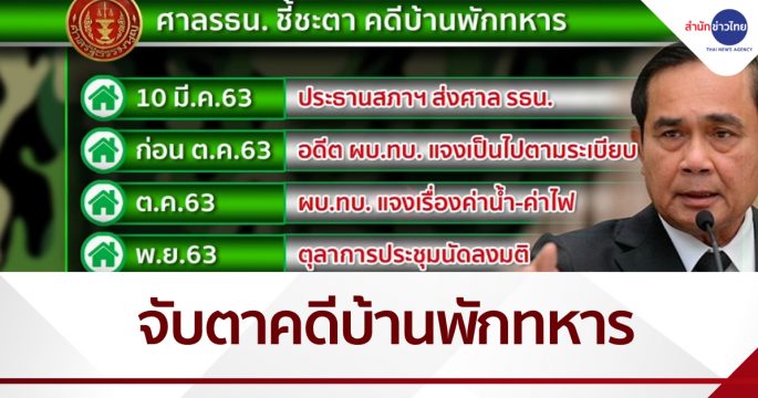 วันพรุ่งนี้ศาลรัฐธรรมนูญนัดชี้ชะตาว่าการเข้าอาศัยในบ้านพักทหารของนายกรัฐมนตรีหลังเกษียณราชการ ขัดต่อรัฐธรรมนูญหรือไม่ หลังใช้เวลาประมาณ 9 เดือน นับตั้งแต่วันแรกที่มีการยื่นเรื่องจากฝ่ายค้าน จนจะมีคำวินิจฉัย
