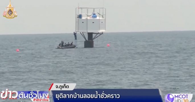 วันนี้ เจ้าหน้าที่ปฏิบัติการเคลื่อนย้ายบ้าน Seasteading ของกลางชิ้นสำคัญ กลับเข้าฝั่งแล้ว หลังมีการลักลอบก่อสร้างในทะเลไทยไม่ไกลจากเกาะภูเก็ต หวังสถาปนาขึ้นเป็นรัฐอิสระ