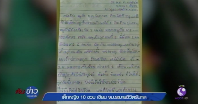 เด็กหญิง 10 ขวบเขียนจดหมายระบายชีวิตรันทด