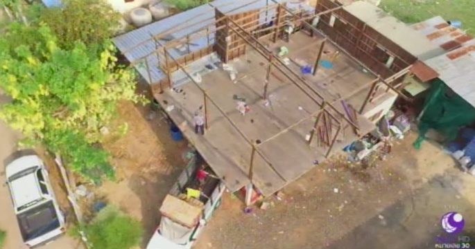 ภาพจากมุมสูงแสดงให้เห็นความเสียหายของบ้านเลขที่ 275 บ้านลำโพงใต้ ต.พุดซา อ.เมือง จ.นครราชสีมา หลังถูกพายุพัดถล่มหลังคาบ้านหายไปทั้งแถบ
