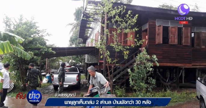 พายุฤดูร้อนพัดกระหน่ำพื้นที่ ต.บ้านเนิน และวังบาล อ.หล่มเก่า จ.เพชรบูรณ์ บ้านเรือนได้รับความเสียหาย 30 หลังคาเรือน ลูกเห็บตกทำให้พื้นขาวโพลน