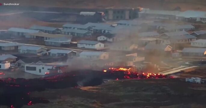 ธารลาวาภูเขาไฟเผาบ้านในไอซ์แลนด์