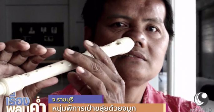 หนุ่มขายลอตเตอรี่พิการทางสายตาใน อ.บ้านโป่ง จ.ราชบุรี มีความสามารถพิเศษ ใช้จมูกเป่าขลุ่ยได้กว่า 80 เพลง โดยเฉพาะบทเพลงพระราชนิพนธ์ “สายฝน”