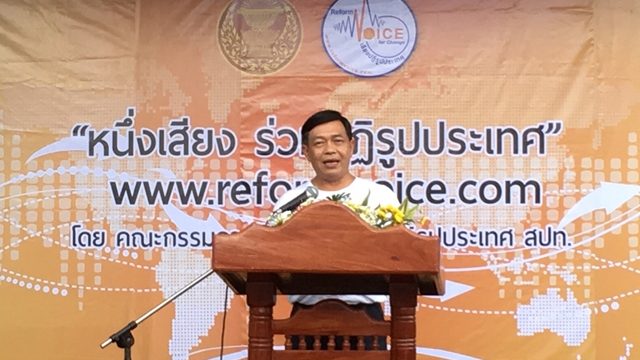 รองประธาน สปท. เปิดกิจกรรมหนึ่งเสียง ร่วมปฏิรูปประเทศ นำทีมแจกเสื้อ-สติ๊กเกอร์รณรงค์เว็บไซต์เสียงปฏิรูปประเทศ อีกช่องทางให้ร่วมกันขับเคลื่อนปฏิรูปประเทศ