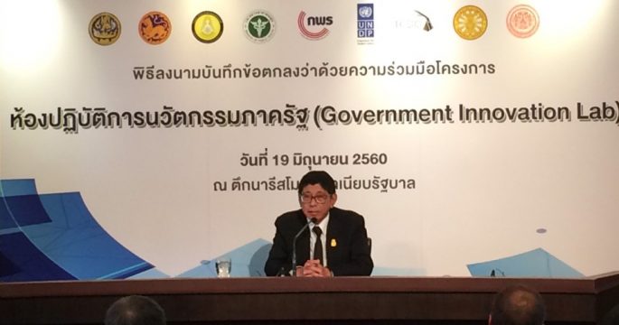 ก.พ.ร.ลงนามความร่วมมือโครงการห้องปฏิบัติการนวัตกรรมภาครัฐ 4 พันธมิตร วิษณุ เชื่อ การลงนามครั้งนี้ ตอบสนองนโยบายไทยแลนด์ 4.0 และการปฏิรูประบบราชการ.