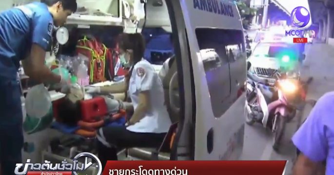 เจ้าหน้าที่เข้าช่วยชีวิตชายคนหนึ่ง หลังกระโดดลงมาจากทางด่วน ค้างอยู่กับตอหม้อเสาไฟฟ้าแรงสูง โดยเสียชีวิตขณะนำส่งโรงพยาบาล