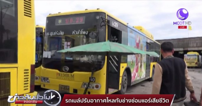 ช่างซ่อมแอร์ถูกรถเมล์ปรับอากาศไหลทับไปอัดกับรถเมล์อีกคัน เสียชีวิตคาอู่ซ่อมรถหลังหมู่บ้านย่าน จ.ปทุมธานี