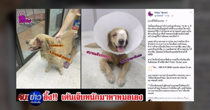 หมออึ้ง สุนัขบาดเจ็บเลือดอาบหน้า วิ่งมาหาหมอเองถึงคลีนิก แถมใช้เท้าเคาะประตูให้ช่วยรักษา