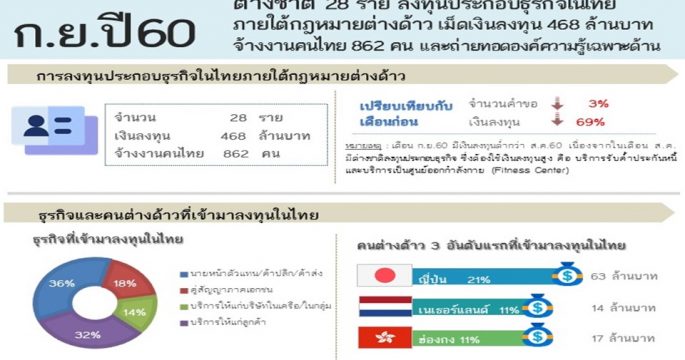 พาณิชย์ไฟเขียวต่างชาติลงทุนไทยอีก 28 ราย เงินลงทุน 468 ล้านบาท จ้างงานคนไทย 862 คน