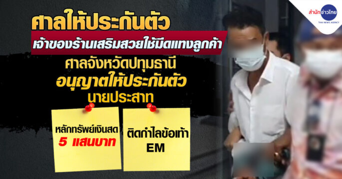 ศาลอนุญาตให้ประกันตัว เจ้าของร้านตัดผมแทงสามีภรรยา 2 ศพ ด้วยหลักทรัพย์เงินสด 5 แสนบาท แต่ต้องติดกำไลข้อเท้า EM