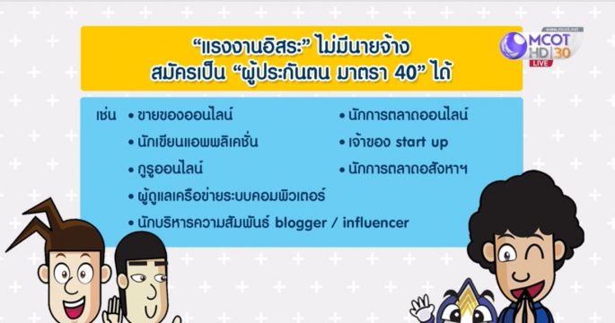 รูปแบบการทำงานที่ปรับเปลี่ยนไป เป็นไม่มีนายจ้าง และมีความเป็นอิสระมากขึ้น อาจทำให้แรงงานไม่ได้รับความคุ้มครองที่เหมาะสมเมื่อเจ็บป่วยหรือชราภาพ สำนักงานประกันสังคมจึงเร่งปรับตัวรองรับแรงงานอิสระเหล่านี้