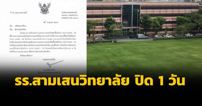 รร.สามเสนวิทยาลัย ประกาศปิดสถานศึกษาวันพรุ่งนี้(15ก.ค.) 1วัน เพื่อทำความสะอาดโรงเรียน หลังมีรายงานพบนักเรียนเป็นกลุ่มเสี่ยงโควิด-19