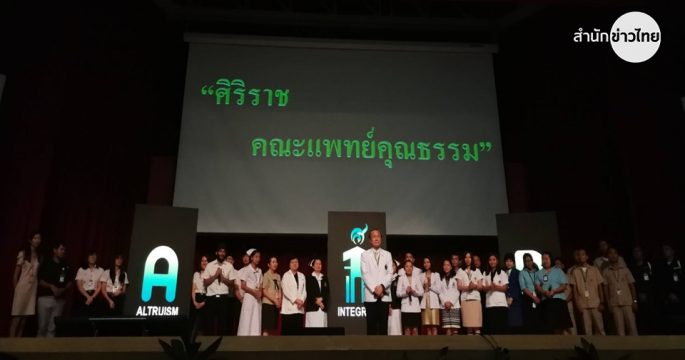 ศิริราช ประกาศเจตนารมณ์คณะแพทย์คุณธรรม มุ่งหวังเปลี่ยนจากนามธรรมเป็นรูปธรรม ขับเคลื่อนสู่การเป็นองค์กรแห่งคุณธรรม และความโปร่งใส คำนึงถึงประโยชน์ส่วนรวมเป็นหลัก
