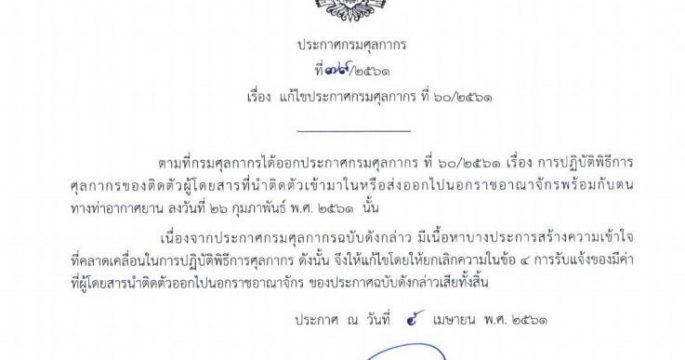 กรมศุลฯ ยกเลิกประกาศการรับแจ้งของมีค่าที่ผู้โดยสารติดตัวออกไปนอกราชอาณาจักร หลังสร้างความสับสนให้กับผู้โดยสาร