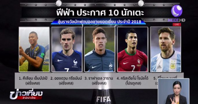 ฟีฟ่า ประกาศรายชื่อ 10 แข้งนักเตะลุ้นรางวัลนักเตะยอดเยี่ยมประจำปี 2018